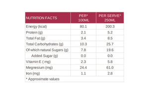 The nut-milk is rich in Magnesium which helps to keep your heart healthy. It also aids in normal muscle & nerve function while helping to improve bone volume, density and formation.
