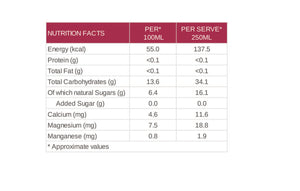 [1] Percent daily values(RDA) are based on a 2000 kcal diet considering a reference man and a reference woman. Your daily values may be higher or lower depending on your calorie needs.